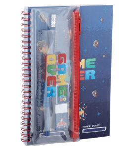 Set šk.pribor 1/6 Game Over, spiralni notes sa pernicom i priborom P48 NETTO