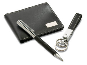 Set darovni Elegance muški novčanik PU, privjesak i roler crni u poklon kutiji
