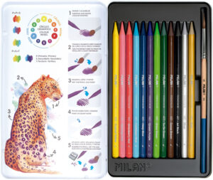 Set crtaći MILAN Todocolor met.kut: 12 bezdrv akvarel bojica+kist P12/48