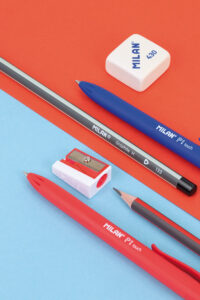 Set MILAN ol.grafX2:HB/H+crvena i plava ol.kem+šiljilo+gumica 430 blister P25
