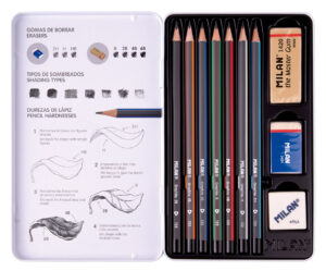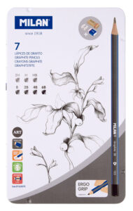 Set crtaći 7 grafitnih olovaka (2H-6B) + gumica Master + šiljilo metalna kutija Milan
