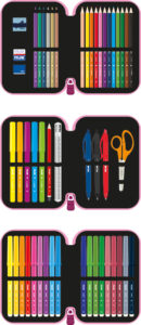 Pernica trostruka sa priborom MILAN Sunset serija, black and pink P12