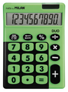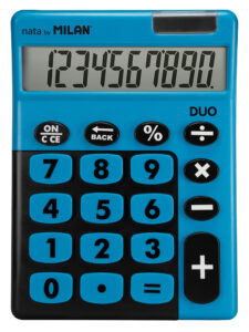 Džepni kalkulator s 8 znamenki, s tipkama ugodnim na dodir. Ima 3 memorijske tipke i funkciju kvadratnog korijena. Dvostruko napajanje: solarna ćelija i baterija od 1,5 V. Automatsko isključivanje. Dimenzije kalkulatora: 10,2 × 6,7 × 0,9 cm. Uključuje zaštitni poklopac. Siva boja s plavim detaljima.