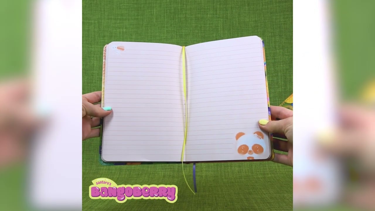 Peekaboo! Ovaj dnevnik je više od obične bilježnice, ovo je pozivnica na otok Bingo Bango, pun avantura! Upoznajte neodoljivu Pally Pandu (skrivena iza lišća) koja će preuzeti brigu o čuvanju vaših najvažnijih i najtajnijih bilješki. S puno prostora za pisanje ili crtanje ovo je idealna bilježnica za uspomenu ili poklon. Dnevnik ima meke podstavljene korice s preklopnim magnetnim zatvaračem, 192 stranice s linijama i vrpcu za označavanje.
